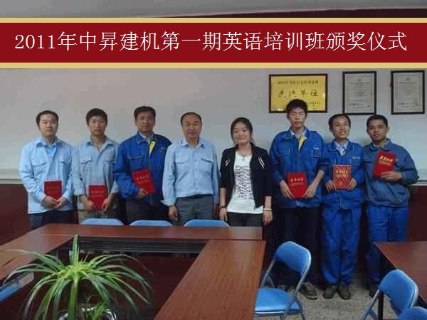 青青艳阳五月天 万类花朵竟争艳,在此春暖花开的大好之际迎来了中昇建机第一期英语培训班结业颁奖仪式的开幕。 本次颁奖仪式的参会人员主要有管理部主任王德华先生、中昇英语教育训练负责人陆伟老师,以及各位获奖人员。