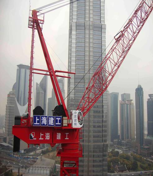 由上海建工公司承建的上海中心大厦工程采用了中昇建机塔机ZSL2700,吊装顺利进行。ZSL2700在世界高层钢结构建设中,属超大型的内爬式动臂塔式起重机。ZSL2700采用柴油发动机引擎驱动,该塔机最大工作幅度为60m,而在27m吊装幅度范围内可吊重达100t,最大起升高度达632m,起升速度达110m/min。其吊装性能和技术水平在国内处于领先地位!