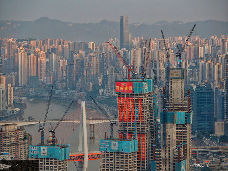 重庆来福士广场的8座塔楼,2座施工高度220m,4座施工高度248m,2座施工高度348m,采用中昇建机ZSL1700(80T)一台,ZSL1500(64T)一台,ZSL1000(64T)一台,ZSL750(50T)四台,ZSL500(32T)六台,ZSL380(32T)六台。