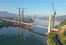8月31日凌晨5:00,国内首座单跨300米、时速350公里、4线、无砟轨道、高低塔斜拉桥——湖杭铁路富春江特大桥正式合龙,标志着富春江特大桥主体结构施工将全面进入桥面系及附属工程施工阶段。 2021-09-02 |