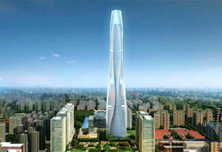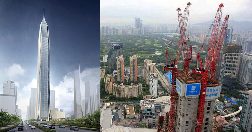 建筑主体高度597米,采用中昇建机ZSL2700(100T)一台。