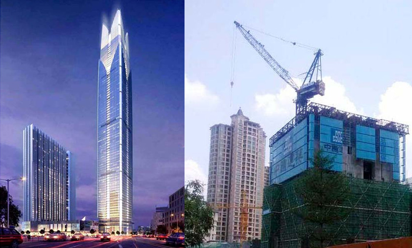建筑主体高度475米,采用中昇建机ZSL2700(100T)一台。
