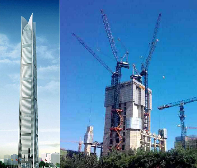 建筑主体高度632米,采用中昇建机ZSL2700(100T)一台。