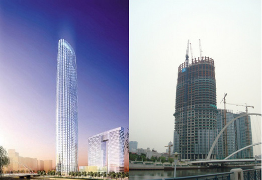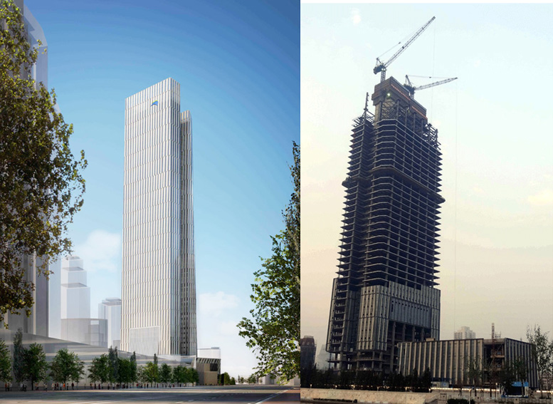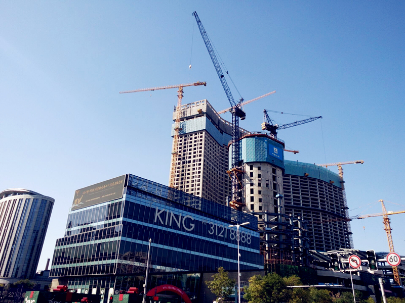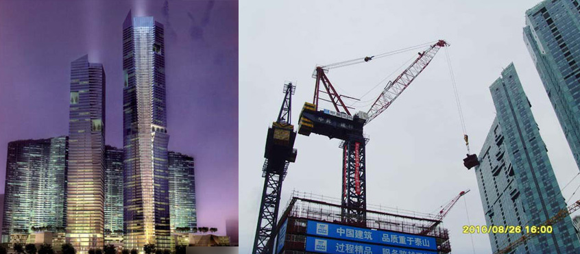建筑高度380米,采用中昇建机ZSL3200(100T)及ZSL750(50T)各一台。