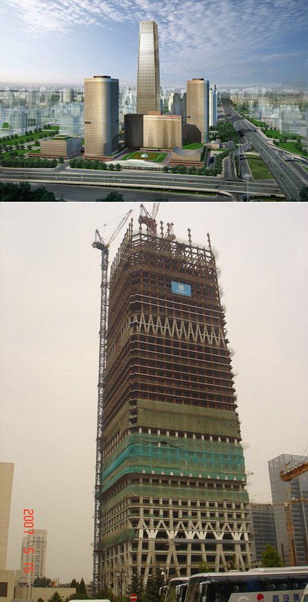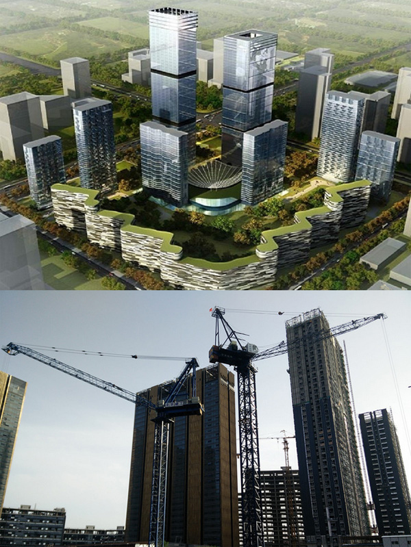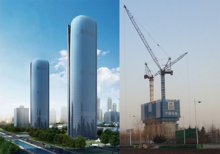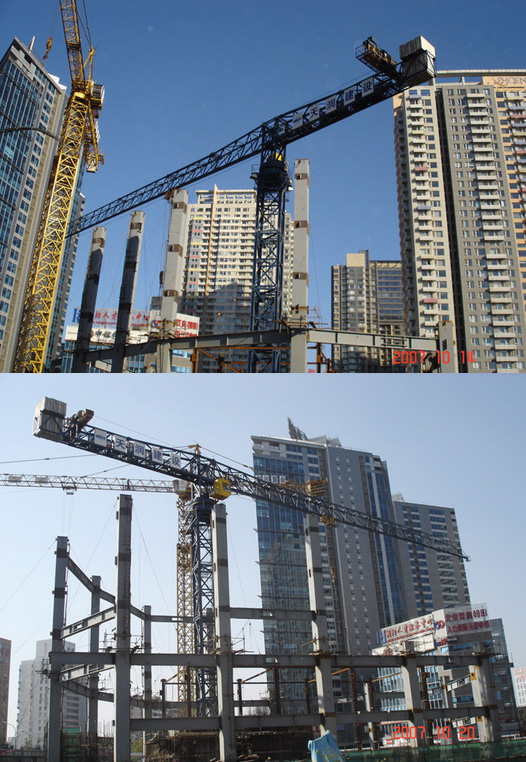 建筑施工高度330米,采用中昇建机ZSL850(50T)一台,ZSL750(50T)一台。