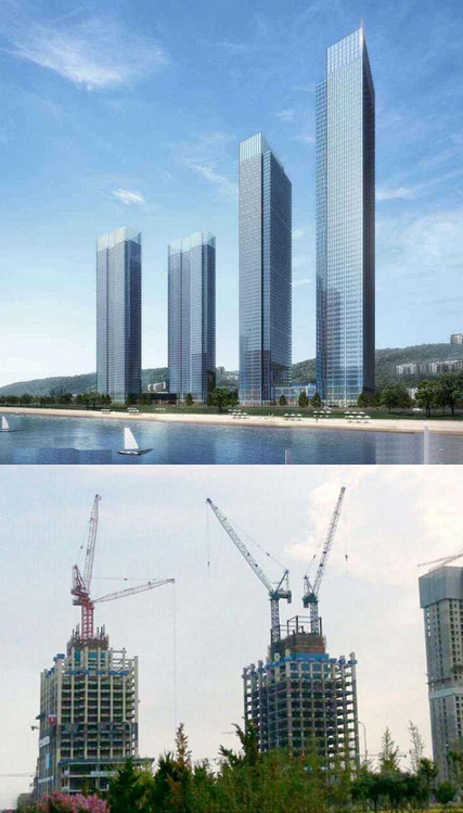 建筑施工高度334、330米,采用中昇建机ZSL850(50T)一台,ZSL750(50T)一台。