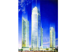 施工高度318米,采用中昇建机塔机ZSL750两台(最大吊重50t)