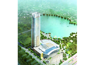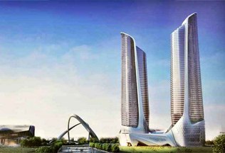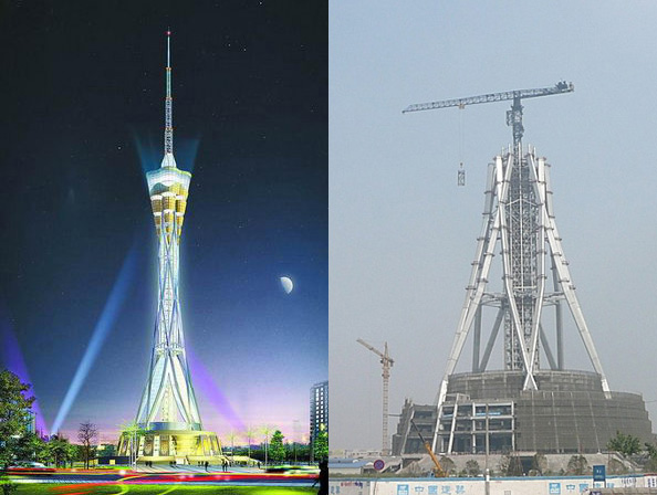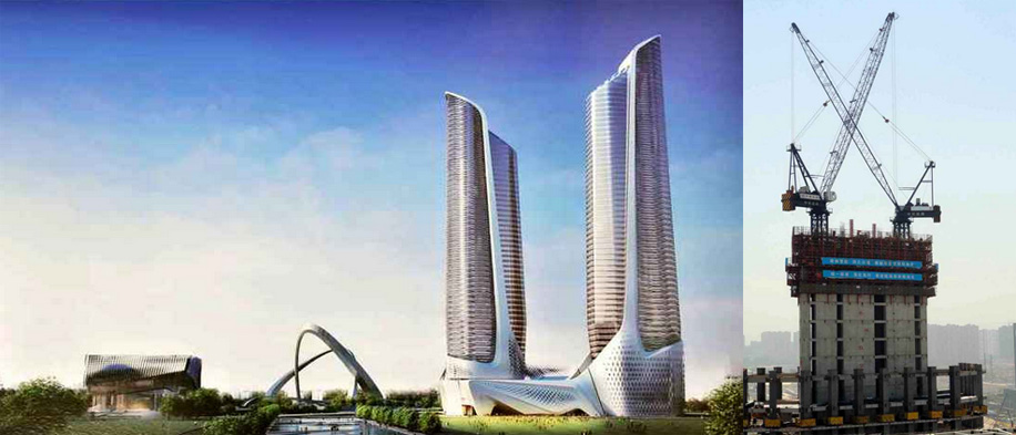 施工高度326.6米,采用中昇建机一台ZSL1000(最大吊重64t) 和一台ZSL380(最大吊重32t)