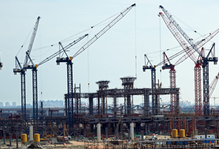 建筑面积147万㎡,采用中昇建机ZSL1200(60T)五台、ZSC70110(50T)两台。
