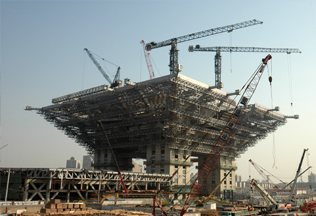 建筑面积84万㎡,采用中昇建机ZSL1100(45T)五台、三ZSL1150(45T)三台。